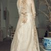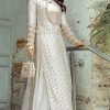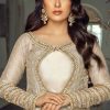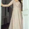 Featuring Ayeza Khan in Komal Chawla’s new collection. An Ivory vibrant fully embroidered straight shirt design is depicted in our outfit. The shirt is supported with pleated panels at the sides and is paired with a bustier. The design showcases our detailed craftmanship in a very subtle way. The golden motives with the floral technique are blended with metallic and stony ornaments with crystal mingling their way into the design