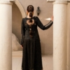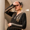 Details “Hira Mani dazzles in our regal Black Knitted Booti Anghrakha frock, perfectly paired with a stunning embroidered choridar. Delicate Dapka, pencil crystals, leaf-shaped stones, crystals, Tikki stones, Cutdana, and sequins come together in a beautiful blend of traditional charm and modern glamour. A true Eid showstopper!