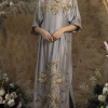 Kaftan’. The epitome of elegance is presented by Komal Chawla Couture featuring Farwa Ali Qazmi. The grey beauty is here to take elegance to new heights with ornaments spreaded over the finest quality of pure silk. Filled with kora dapka, bal nakshi and pearls ‘Kaftan’ lends itself to festivities.