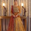 Dusty rust peplum top along with panelled skirt, Maroon scalloped net dupta and cape embroidered zordozi detail