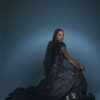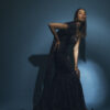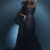 Including: The mermaid bustier gown is styled in an asymmetrical design with pleats sporting the one shoulder falling dupatta. The black beauty is pasted with handcrafted ornaments with layered ruffles uplifting the design.